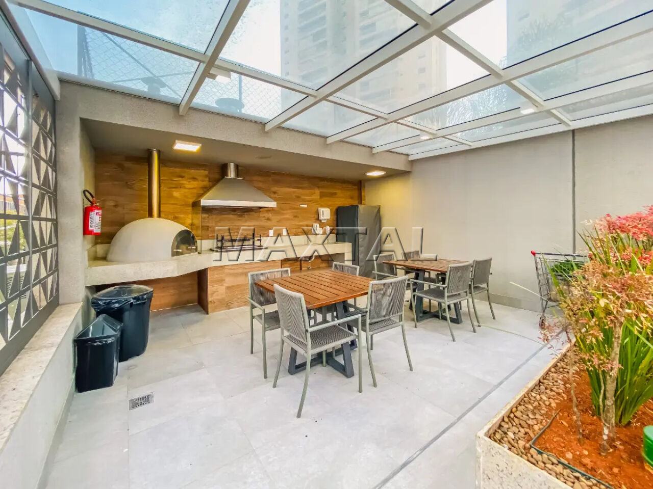 Churrasqueira e forno de pizza a gás na varanda gourmet-(Infra para carvão).